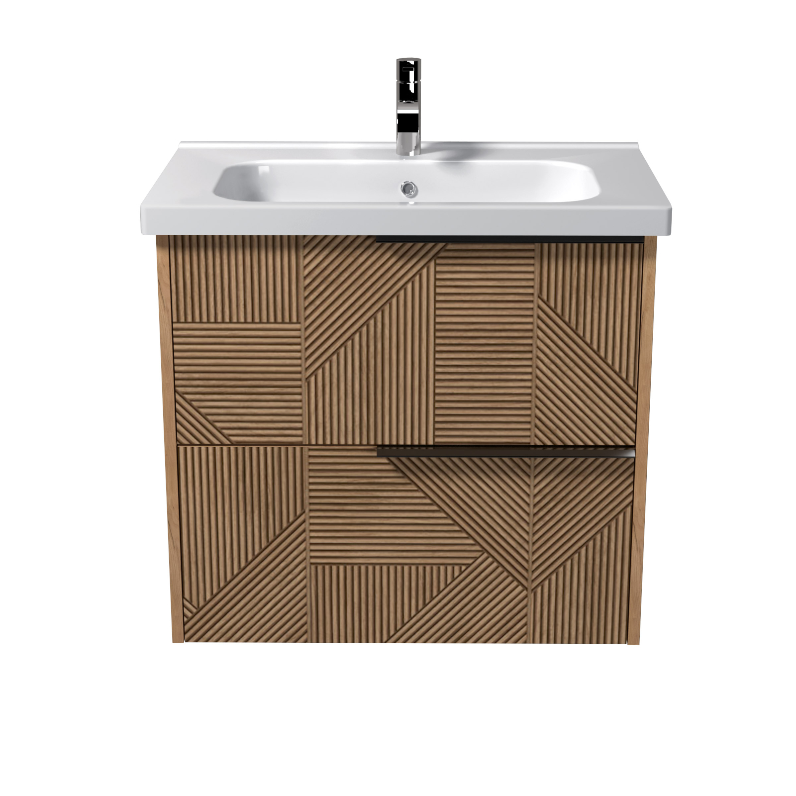 Creează o baie modernă, rafinată și ușor de întreținut cu mobilierul de baie suspendat Keramka, dotat cu lavoar ceramic integrat și sertare imitatie 3D Relief. Fabricat din PAL Spaniol de înaltă calitate, acest mobilier combină durabilitatea cu estetica, fiind alegerea perfectă pentru orice baie contemporană.