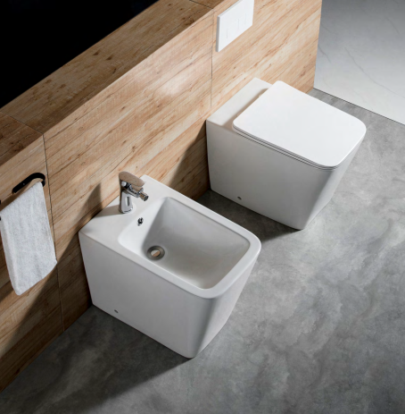 Set WC și bideu stativ (pe pardoseală) conceput pentru băi moderne care folosesc rezervor WC încastrat în perete și cadru metalic încastrat pentru bideu. O soluție elegantă, cu aspect apropiat de cel suspendat, dar cu stabilitate pe pardoseală.